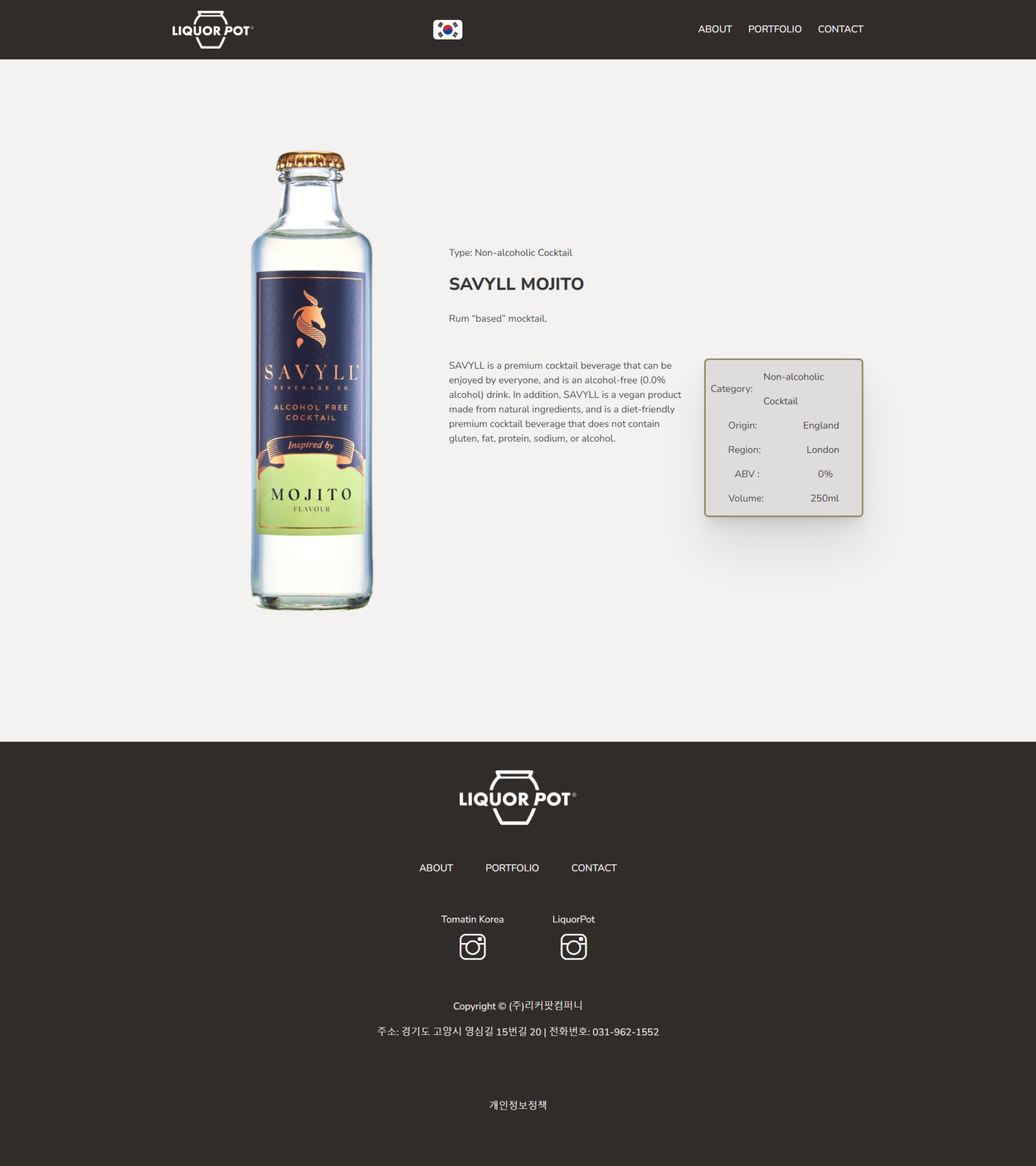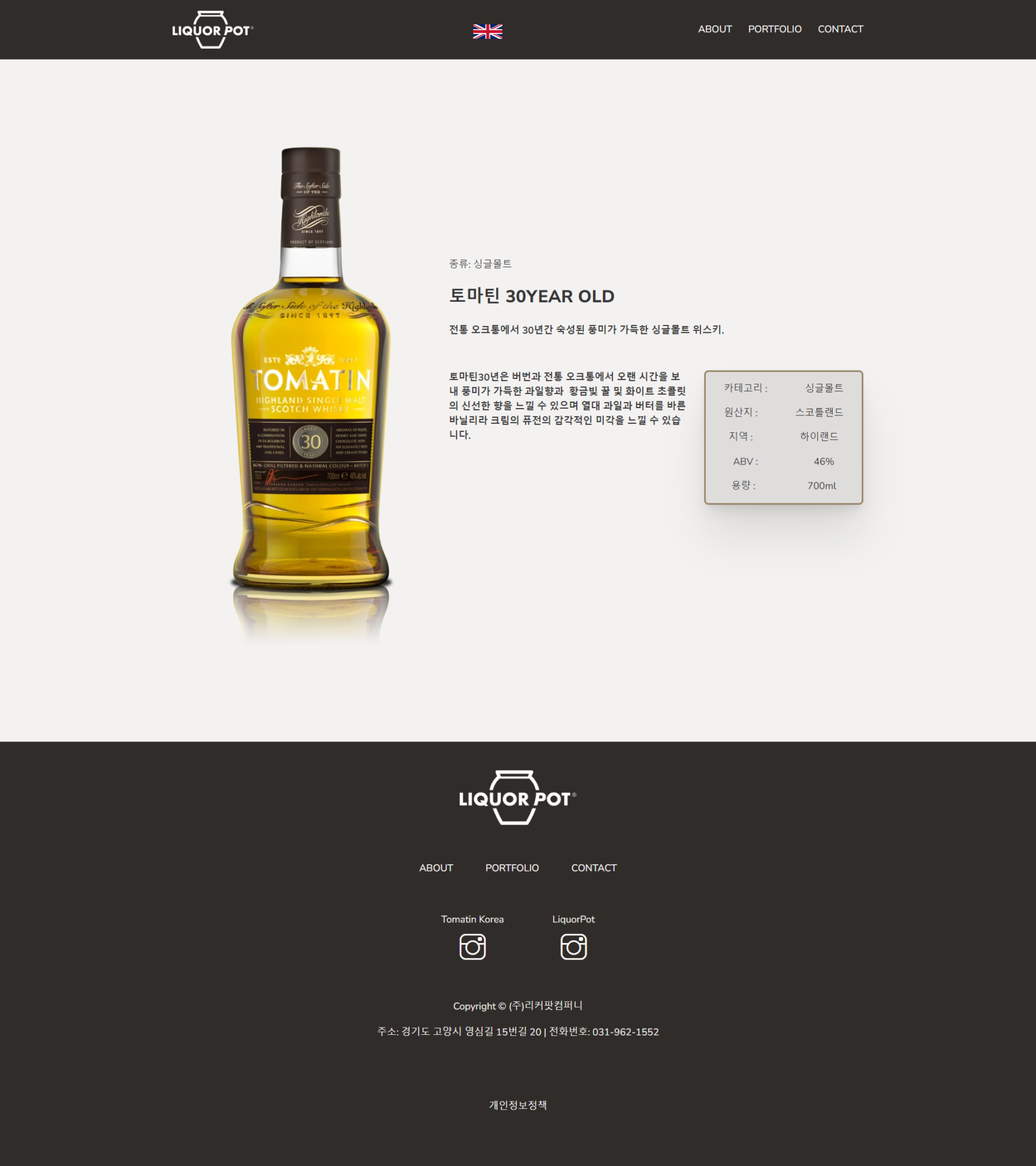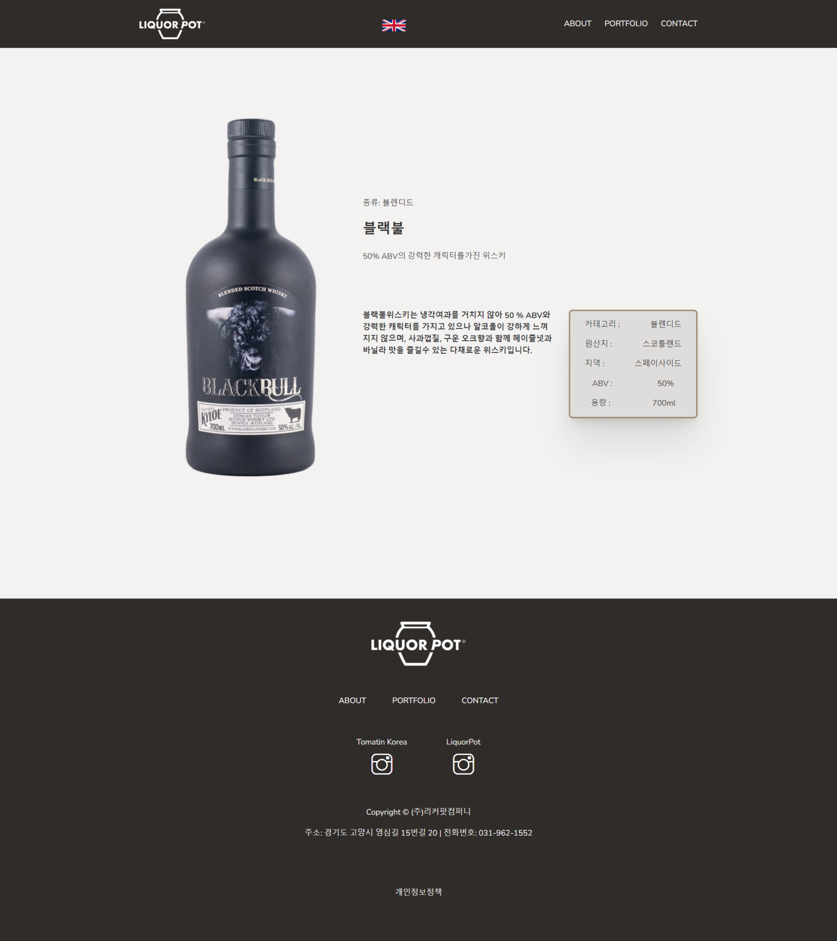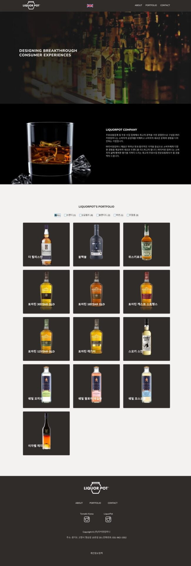 리커팟 컴퍼니는 해외 위스키 브랜드들이 한국 시장에서 자사를 쉽게 찾을 수 있기를 원했습니다. 그들은 한국 내 주류 수입 업체로서 진지한 존재감을 보여주고자 했으며, 이를 위해 해외 마케팅 중심의 홈페이지를 제작하게 되었습니다.